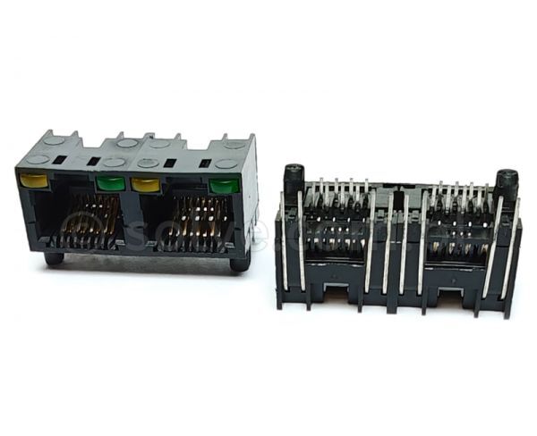 Złącze gniazdo 1x 2x RJ45 8p8c diody LED THT 1516-0-88-13C