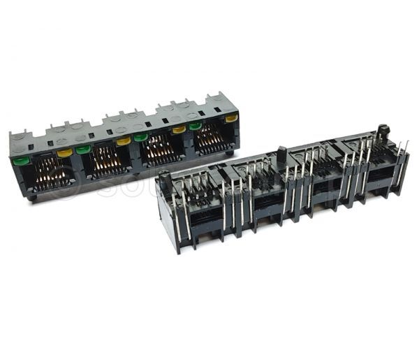 Złącze gniazdo 1x 4x RJ45 8p8c diody LED THT 1542-0-88-162