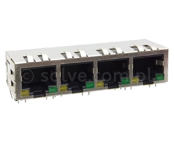 Złącze gniazdo 1x 4x RJ45 8p8c ekran diody LED EMI THT 1342-1-88-13C