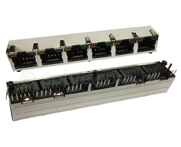 Złącze gniazdo 1x 6x RJ45 8p8c ekran diody LED EMI THT 1546-1-88-162
