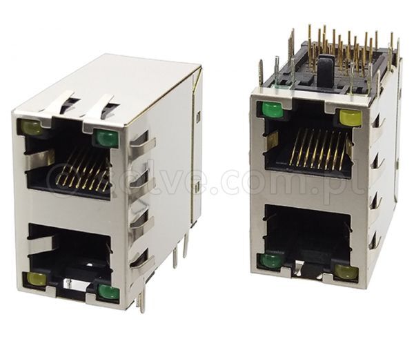 Złącze gniazdo 2x 1x RJ45 8p8c ekran diody LED EMI THT 1561-2-20-13C