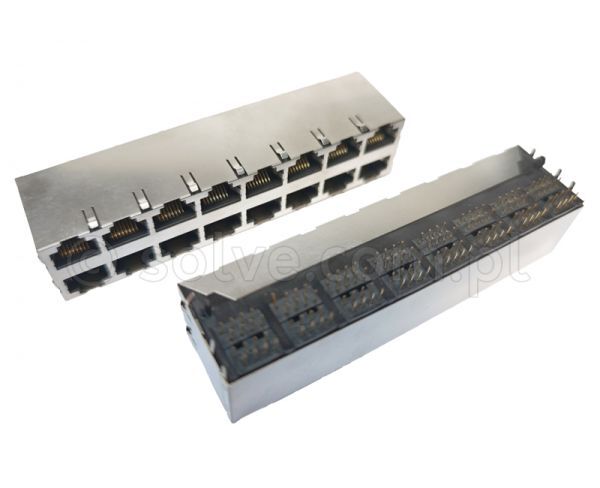 Złącze gniazdo 2x 8x RJ45 8p8c ekranowane EMI THT kątowe 1448-2-88-13C